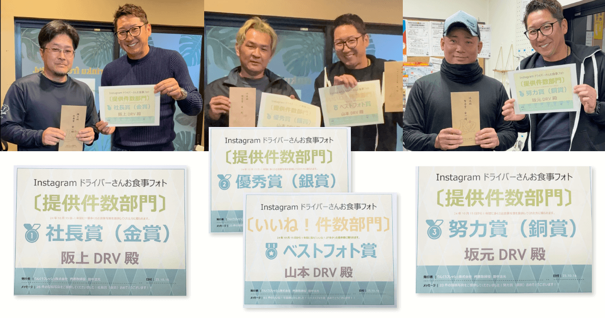 この1年間、投稿内容をご提供くださったRFドライバーの皆様へ、社長より金一封が支給されました。日頃からのご協力に、改めて深く御礼申し上げます。